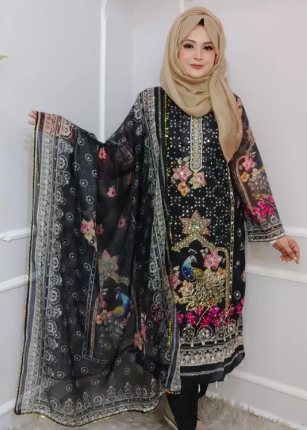 যারা পার্টি বা স্পেশাল অকেশনের জন্য ডিপ ব্ল্যাক শেডে ঝলমলে ও রিচ লুক খুঁজছেন—তাদের জন্য Indian Inspire (Dazzling Black) একটি পারফেক্ট চয়েস। মিরর, স্টোন আর জারদৌসি কাজের শাইন ড্রেসটিকে করেছে একেবারে রাজকীয় ও নজরকাড়া।