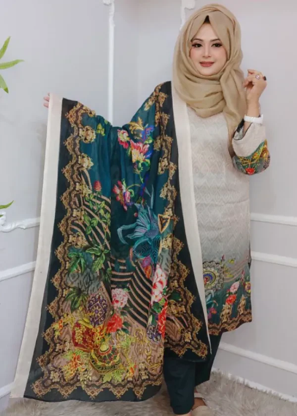 প্রিমিয়াম সুইস কটন লনে তৈরি Toruchaya Mostofa। কামিজে রয়্যাল ডিজিটাল প্রিন্ট আর ওড়নায় ফ্লোরাল প্রিন্ট—ক্লাসি, ফ্রেশ ও আরামদায়ক লুক।